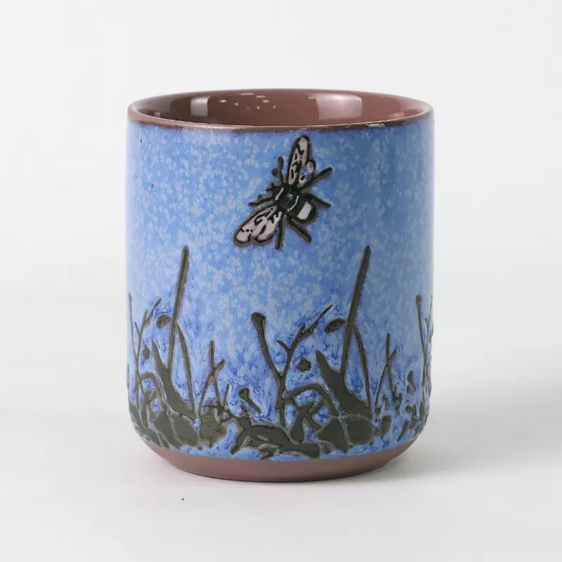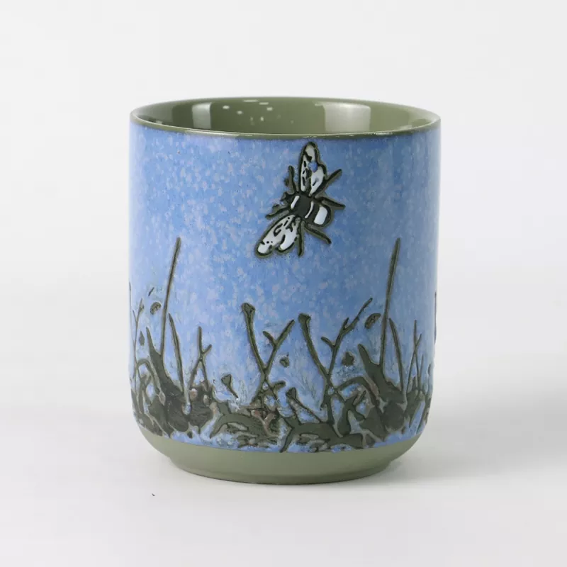 इन्सेक्ट-प्याटर्न सिरेमिक क्यान्डल होल्डर शृङ्खलाले "Cordyceps सिम्बायोसिस" को प्राकृतिक इमेजरीबाट प्रेरणा लिन्छ, जसले शास्त्रीय पूर्वी सौन्दर्यशास्त्रको सार र तारायुक्त आकाशको रहस्यमय सौन्दर्यलाई समेट्छ। यसले हातले चित्रित अन्डरग्लेज सजावटको साथ उच्च-तापमान भट्टीबाट चलाइएको ग्लेजलाई मिश्रण गर्दछ, दर्जनौं समायोजन र सुधारहरू पार गर्दै अन्ततः तीनवटा हस्ताक्षर रङहरू सिर्जना गर्दछ: स्टेरी नाइट ब्लू, मिस्टिक ग्रीन, र डीप इन्डिगो। कचौराको बाहिरी पर्खाल एक विशाल तारायुक्त आकाश जस्तो देखिन्छ जुन राम्रो सुनको फ्लेक्सले छर्किएको छ, मानौं मिल्की वेको चमक तपाईंको हातको हत्केलामा राखिएको छ; भित्री पर्खालले शुद्ध ग्लेज प्रयोग गर्दछ, ऐनाको रूपमा स्पष्ट, बाहिरी भागमा तारायुक्त आकाश बनावटसँग बलियो दृश्य भिन्नता सिर्जना गर्दै, प्रकाश र छायाको अन्तरक्रियामा सरलता प्रदर्शन गर्दछ। हातले चित्रित पुतली, घाँस स्टेम, र तलमा डन्डेलियन ढाँचाहरू, अनुभवी कारीगरहरूले सावधानीपूर्वक बनाइएका, जीवन्त र जीवन्त छन्, जीवन चक्र र प्रकृतिको सहजीवनको अनन्त कथा बताउने देखिन्छ। प्रत्येक कप कला को एक अद्वितीय काम हो, प्रकृति को लागी श्रद्धा को मूर्त रूप र जीवन को उत्सव।